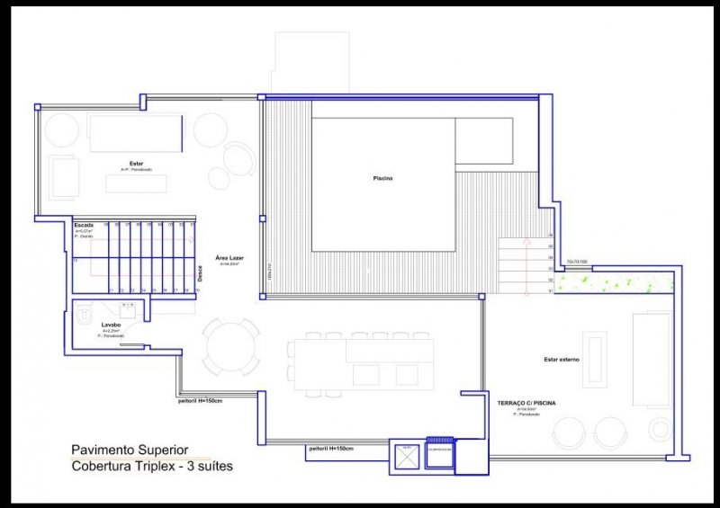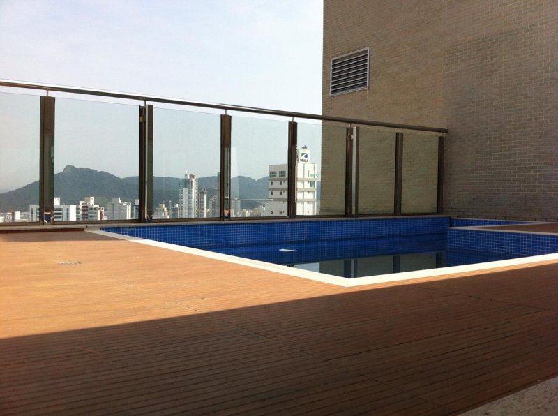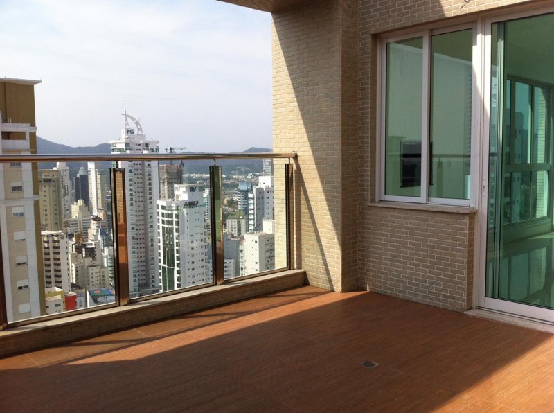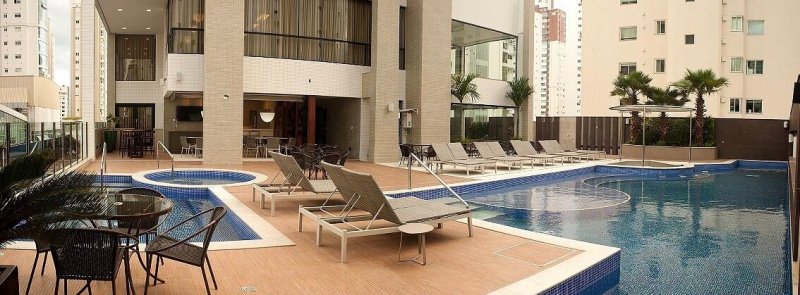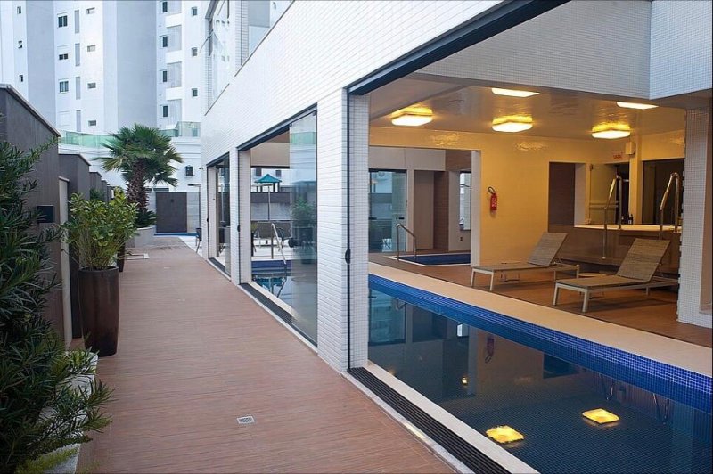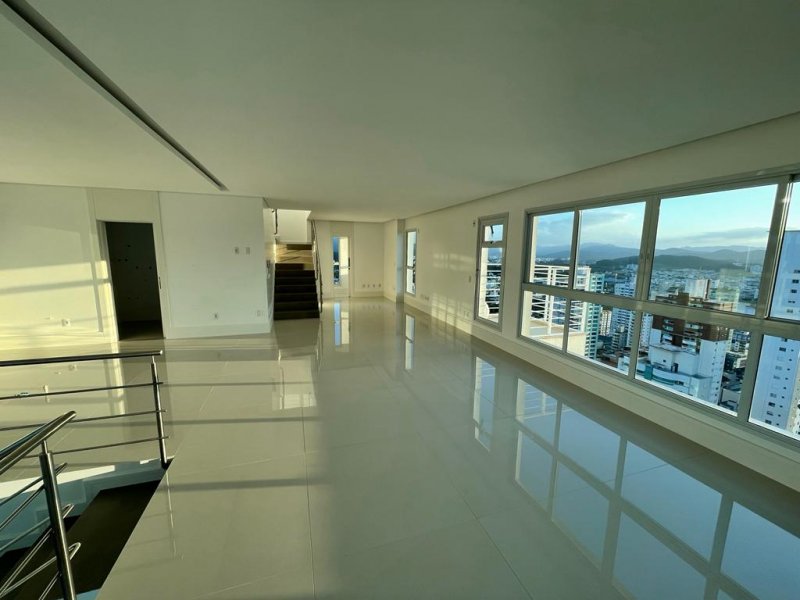 Cobertura Triplex em Balneário Camboriú, com 330m² privativos, nunca habitada, 03 suítes, 4 Vagas, sem mobília, acabamentos de alto padrão, sala de estar e jantar em um living integrado, cozinha, lavabo, área de serviço, espaço gourmet com churrasqueira à carvão, amplo terraço com piscina privativa
