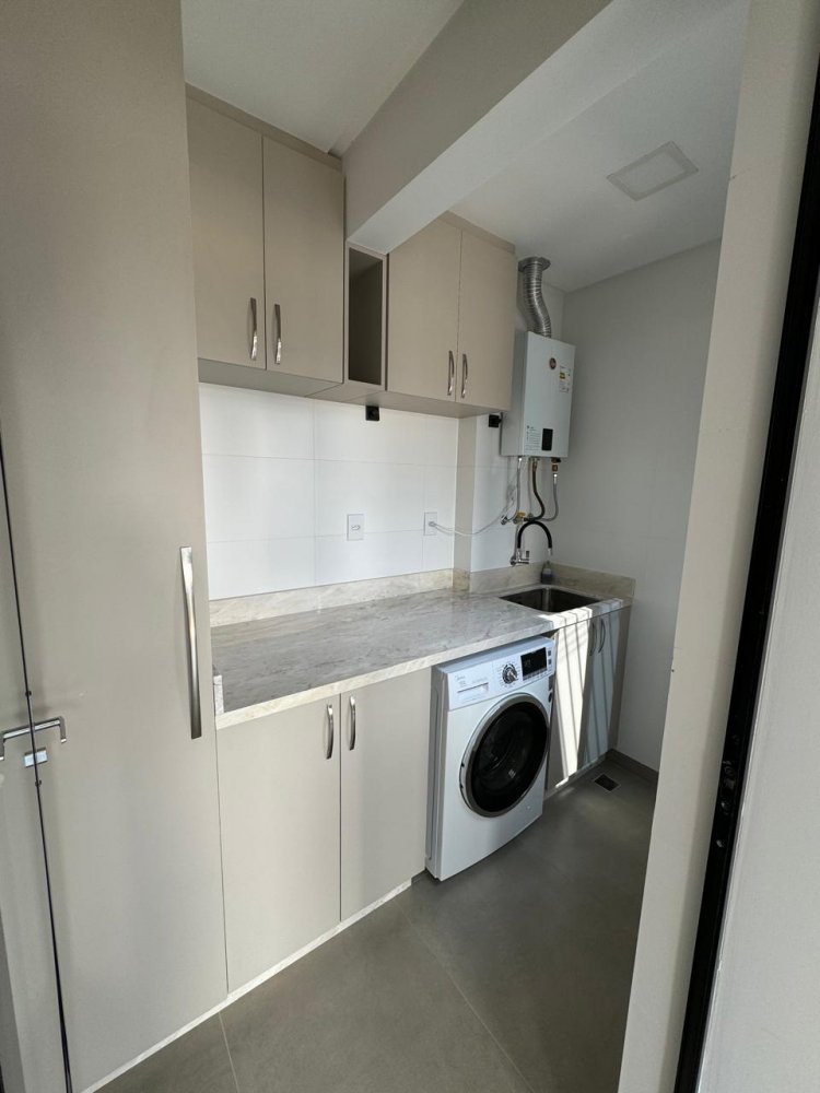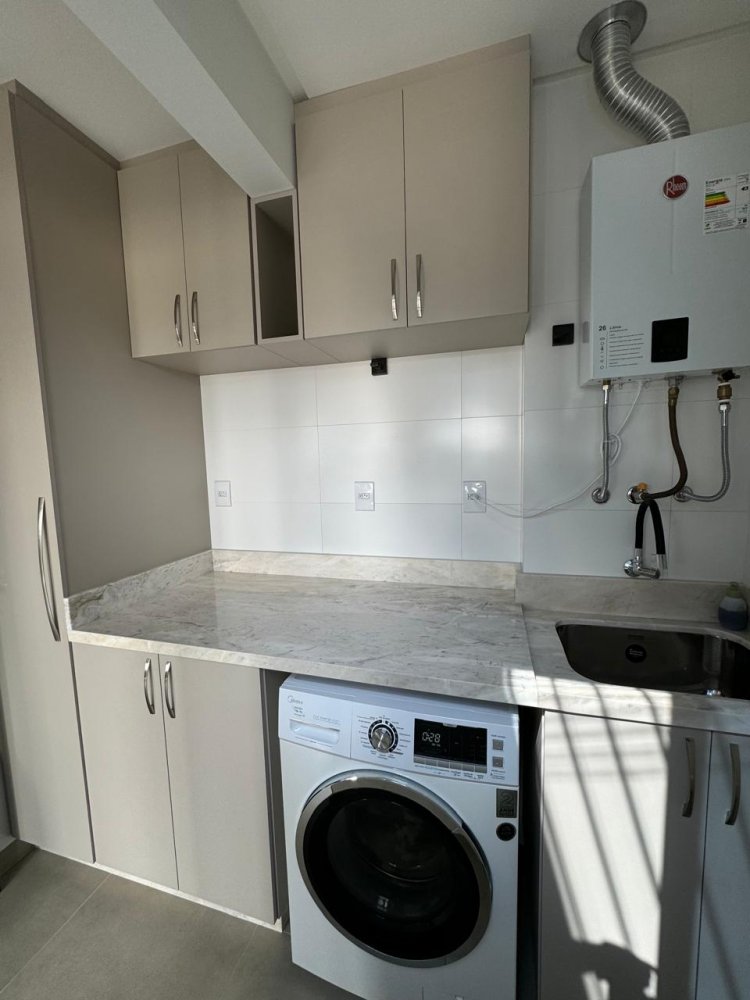 Lavabo funcional e área de serviço.